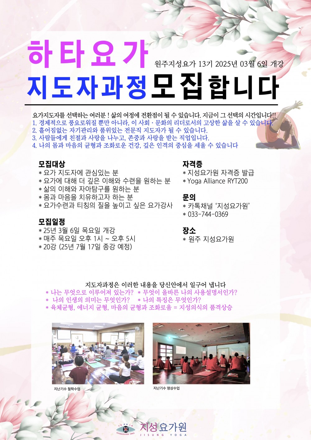 25년 03월 06일 요가 지도자과정 시작합니다.