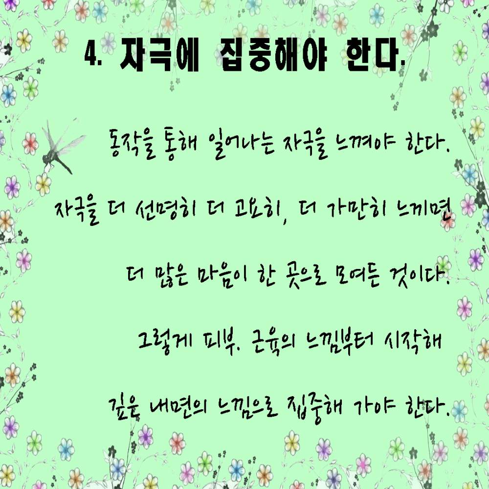 요가 동작속에서 자극에 더 귀를 기울여보자.