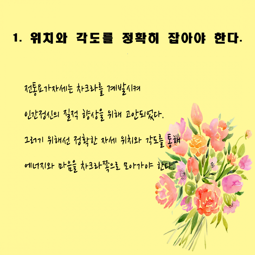 요가할때 꼭 지키며 해야할 10가지 - 1 위치와 각도를 바르게 잡아야 한다.